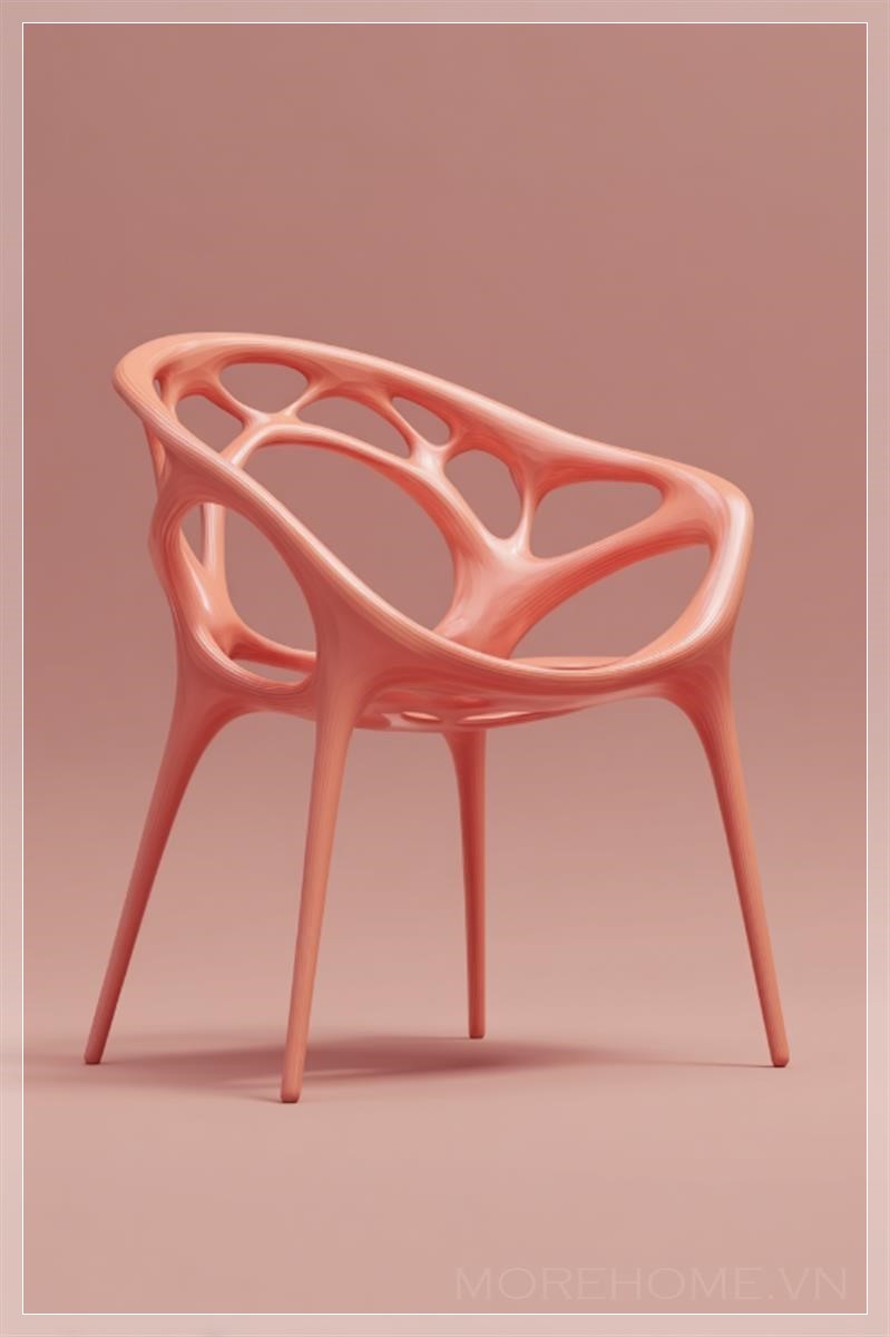 Chiếc ghế nhựa màu đào, mang đậm ảnh hưởng từ các họa tiết Ba Tư cổ điển, thể hiện một thiết kế thanh lịch và tinh tế, với đường nét hình học uyển chuyển và bóng đổ mềm mại. Được thiết kế với sự chú trọng đến từng chi tiết nhỏ nhất, ghế không chỉ là một món đồ nội thất, mà còn là một tác phẩm nghệ thuật mang đậm tính biểu tượng. Tông màu đào nhạt kết hợp với bề mặt nhựa mờ tạo nên một cảm giác nhẹ nhàng, dễ chịu, khiến nó trở thành điểm nhấn hoàn hảo cho không gian sống hiện đại.