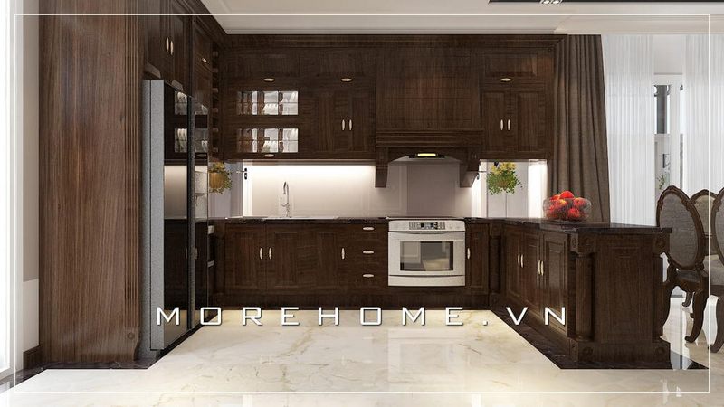 Thiết kế nội thất phòng bếp biệt thự tân cổ điển sang trọng và tiện nghi