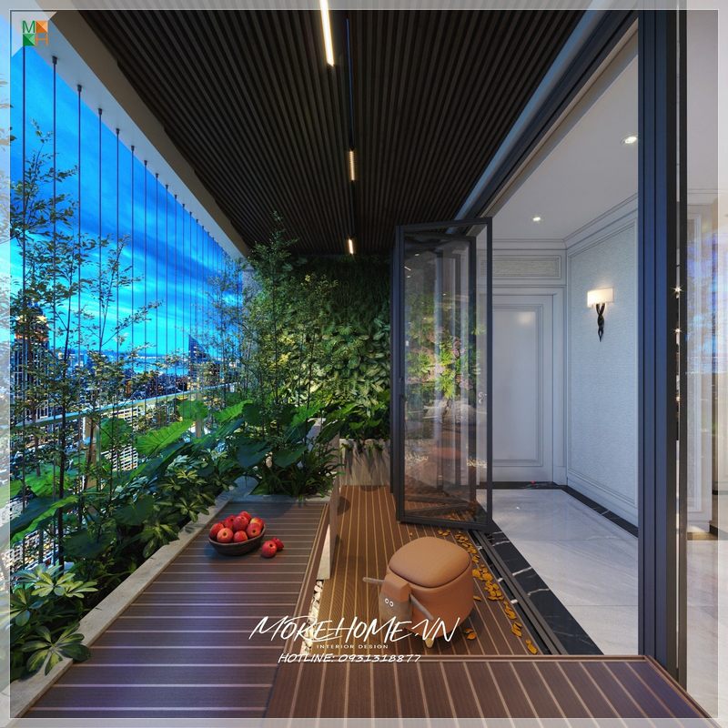 Cửa kính ngăn giữa không gian bên trong và logia mang thẩm mỹ hiện đại .